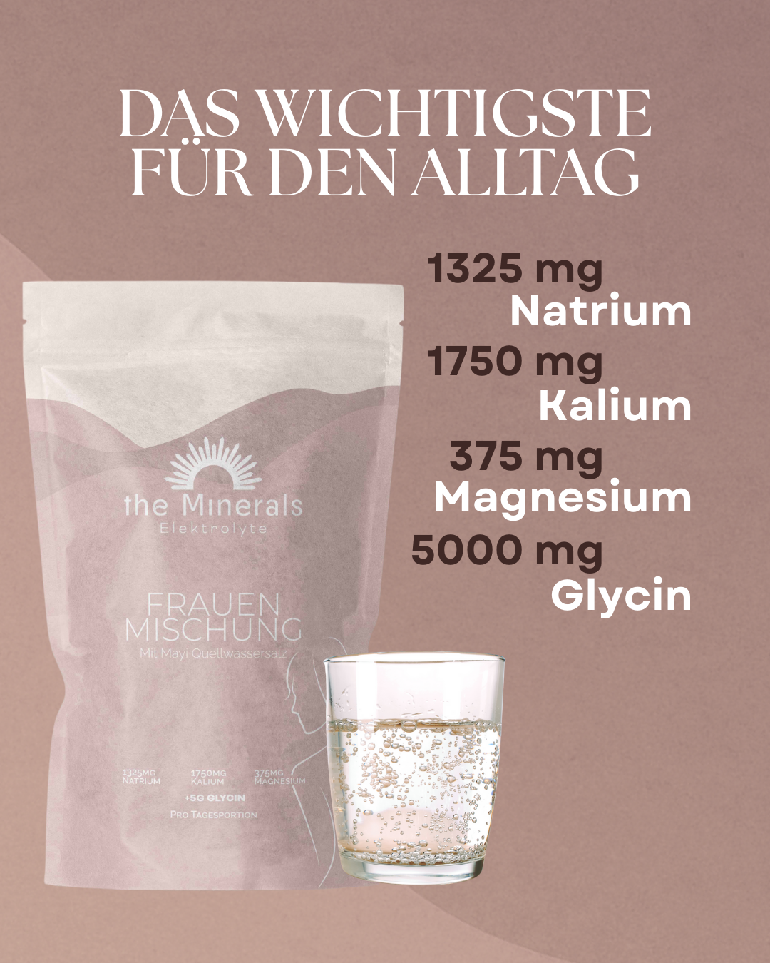 Bio-Dextrose, Glycin, Taurin, L-Lysin, L-Glutamin (KyowaQuality®), Natriumchlorid aus Mayi-Quellwassersalz, Magnesiummalat, Kaliumchlorid, Creatin-Monohydrat (Creavitalis®), NeuroTeyanin.
